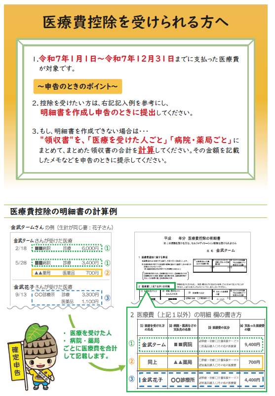 医療費控除を申告する皆様へ ※詳細は下記に記載。