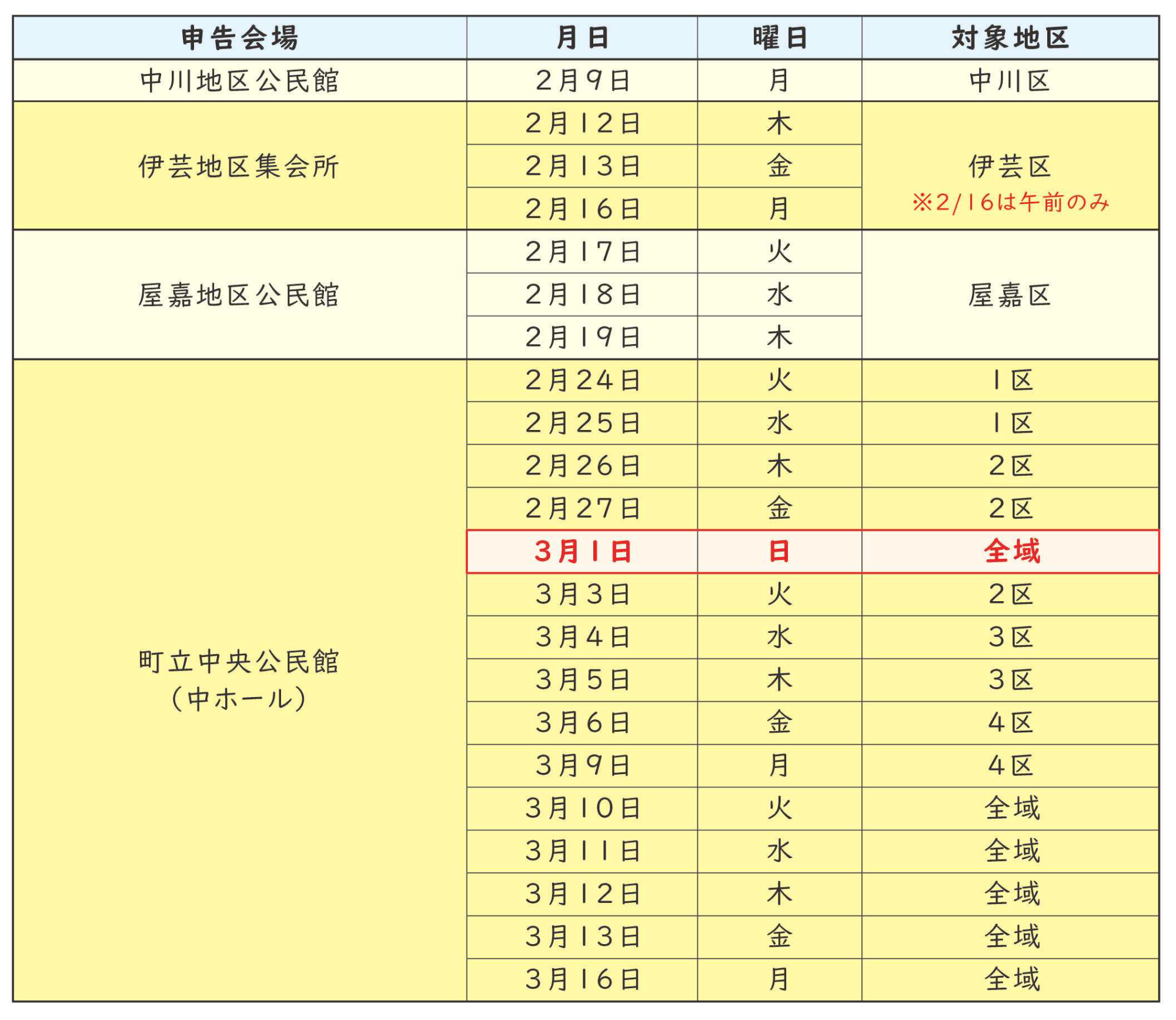 申告相談日程